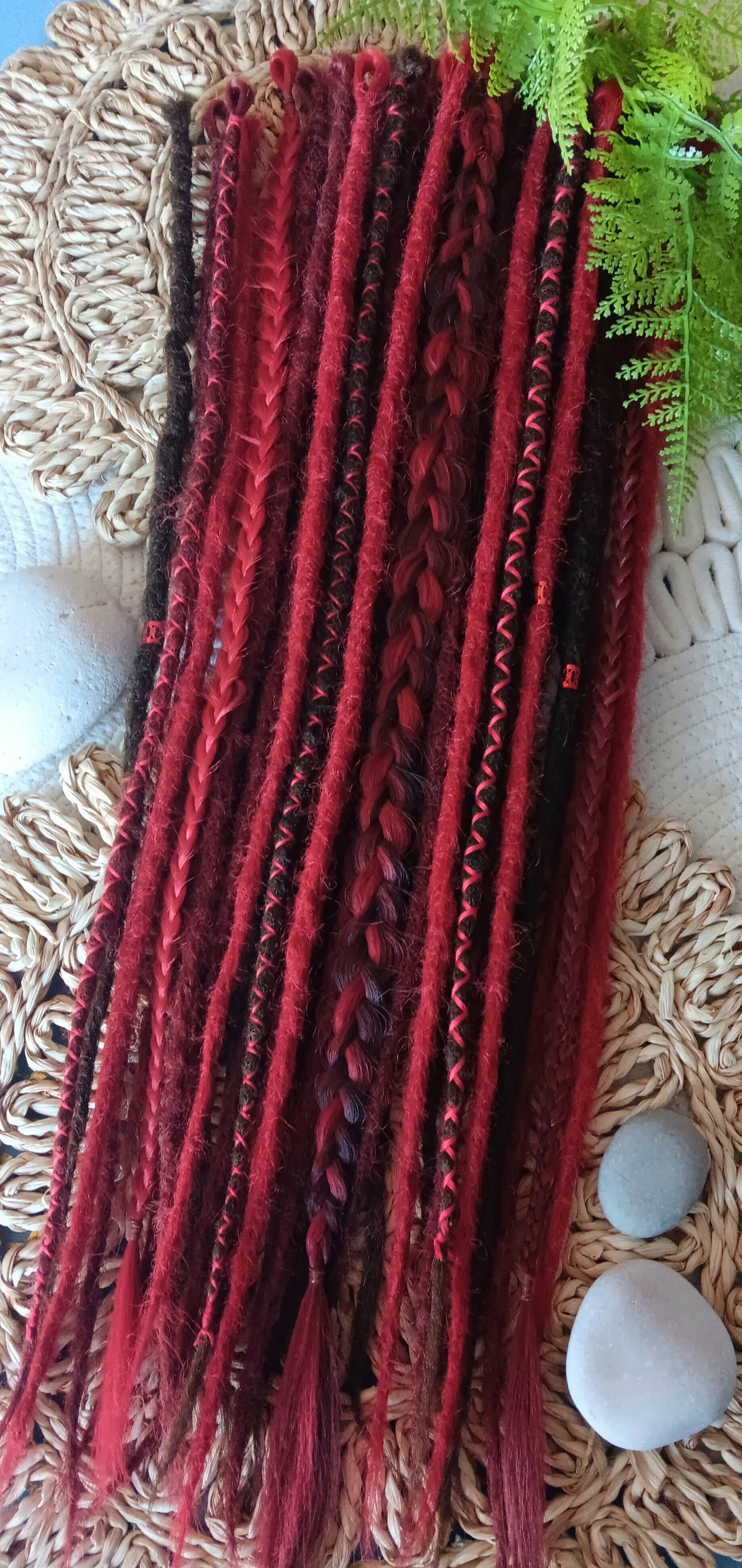 All synthetic dreadlocks are handmade with Henlon hair without chemical coating (hypo allergenic) and made with the crochet method to ensure the highest quality. These dreadlocks are reusable many times.